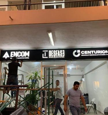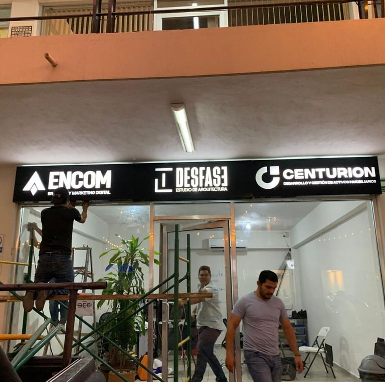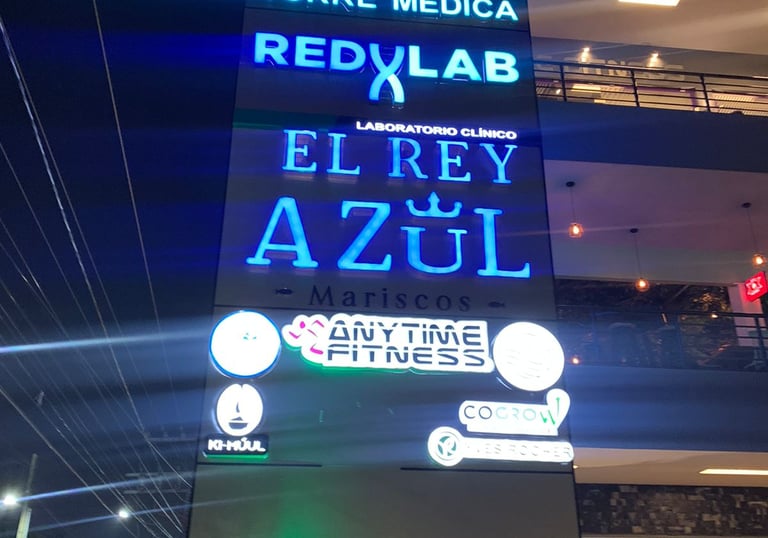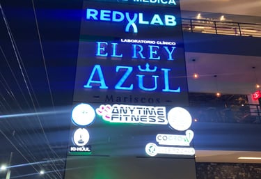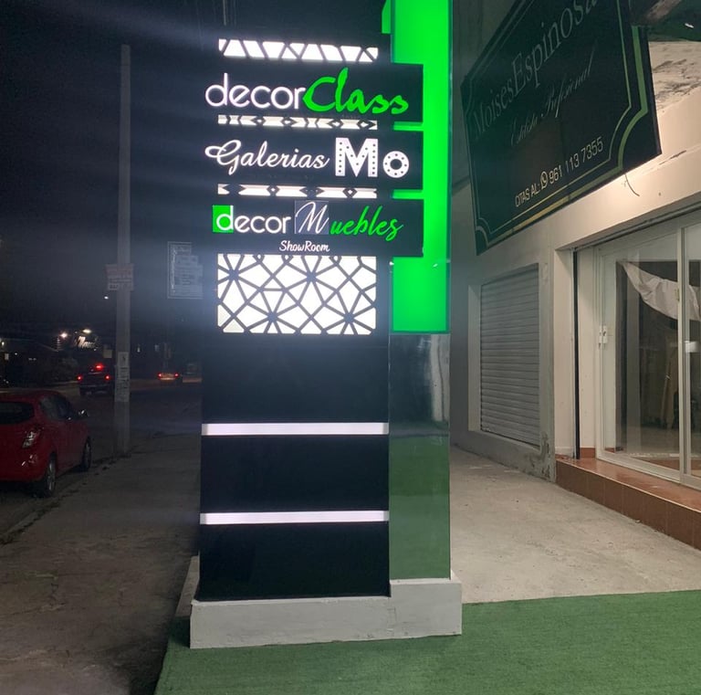 Estructura fabricada con panel compuesto de aluminio, diseñada para ofrecer una apariencia moderna, elegante y de alta durabilidad. El tótem integra letras corpóreas y cajas de luz independientes para cada local de la plaza, permitiendo una iluminación personalizada que realza la visibilidad nocturna de cada marca. Gracias a su diseño modular, garantiza fácil mantenimiento, resistencia a la intemperie y bajo consumo energético mediante sistemas LED de alta eficiencia. Ideal para plazas comerciales, desarrollos corporativos y centros de servicio que buscan proyectar una imagen profesional y contemporánea.