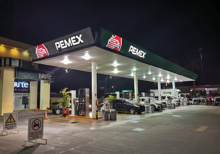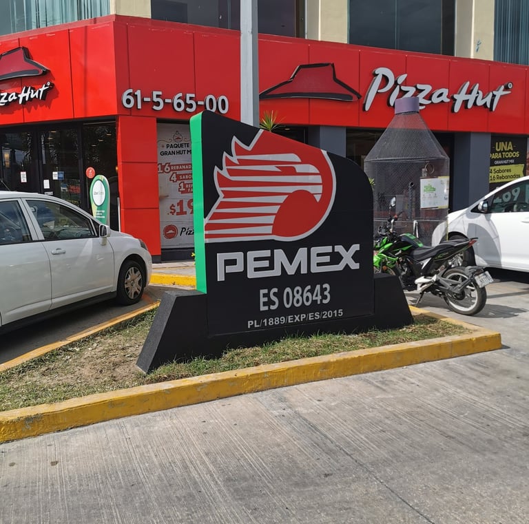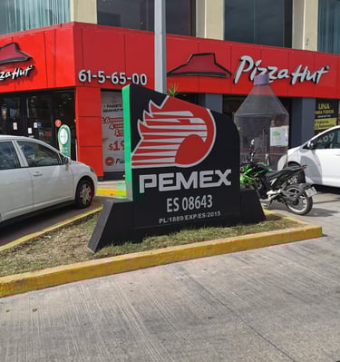 Fachada elaborada con panel compuesto de aluminio, montado directamente sobre la estructura existente para brindar una apariencia uniforme, moderna y resistente a la intemperie. El sistema incorpora iluminación indirecta mediante luminarias empotradas o reflectores LED, lo que permite resaltar la identidad visual del conjunto sin utilizar letras iluminadas. Gracias a la alta calidad del material, esta solución ofrece larga durabilidad, bajo mantenimiento y una presentación profesional tanto de día como de noche. Ideal para gasolineras, corporativos o franquicias que buscan una imagen sólida, limpia y coherente con su marca.